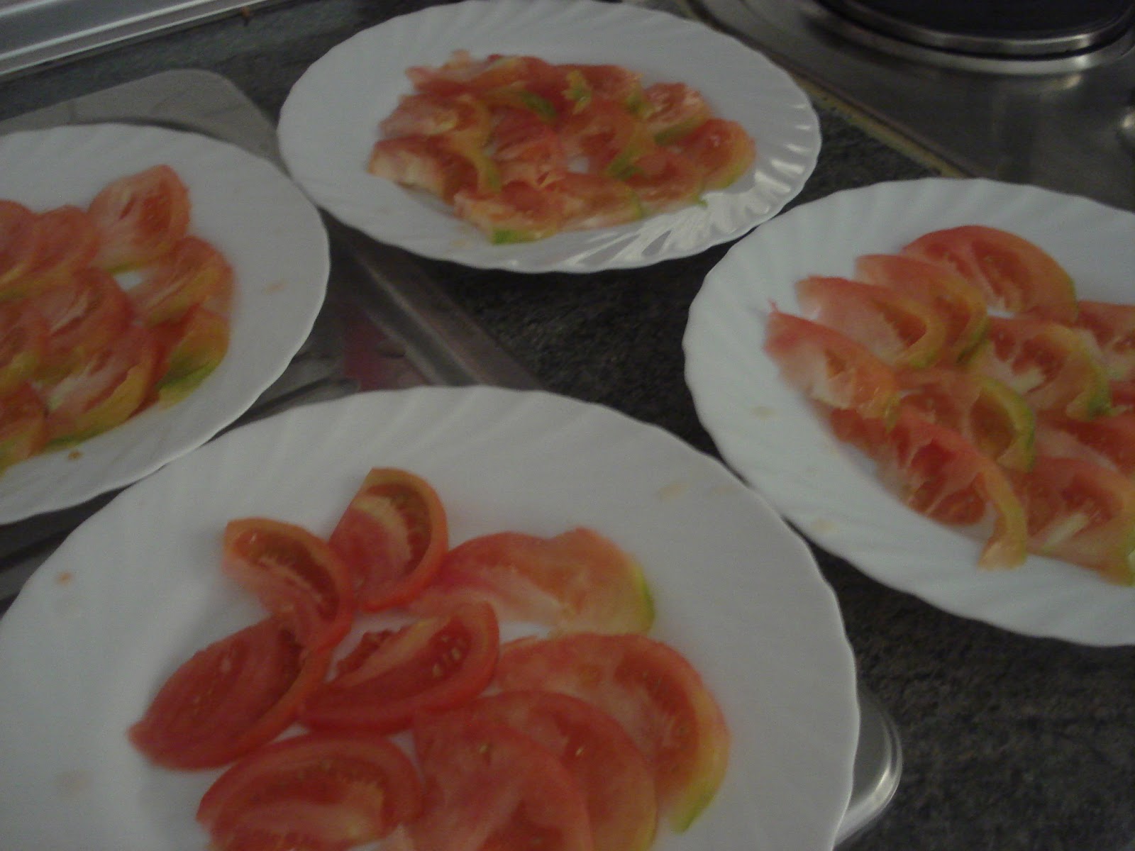 Bueno vamos con la Ensalada, tomate, cortado finito.